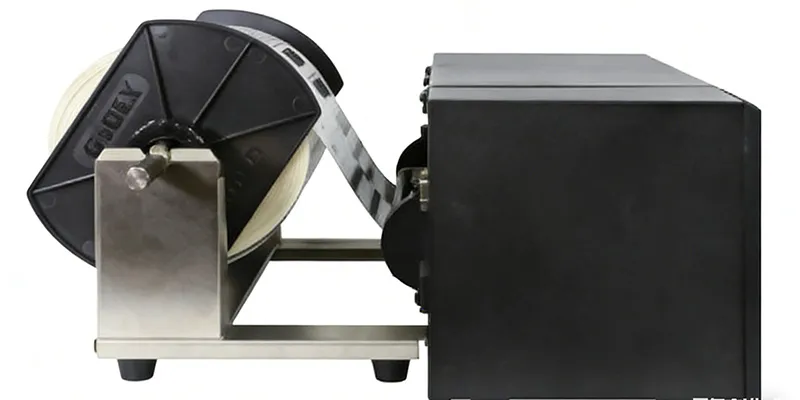 外挂式设计能让使用者更方便的替换纸卷并快速穿纸打印, 可支援最大外径 10” 的标签纸卷,标签纸选用宽度可从 4” 起到最大 8.6”