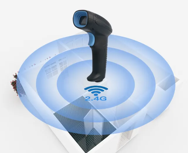 小巧精致的多功能手持条码阅读器HS-S2D的无线版本。